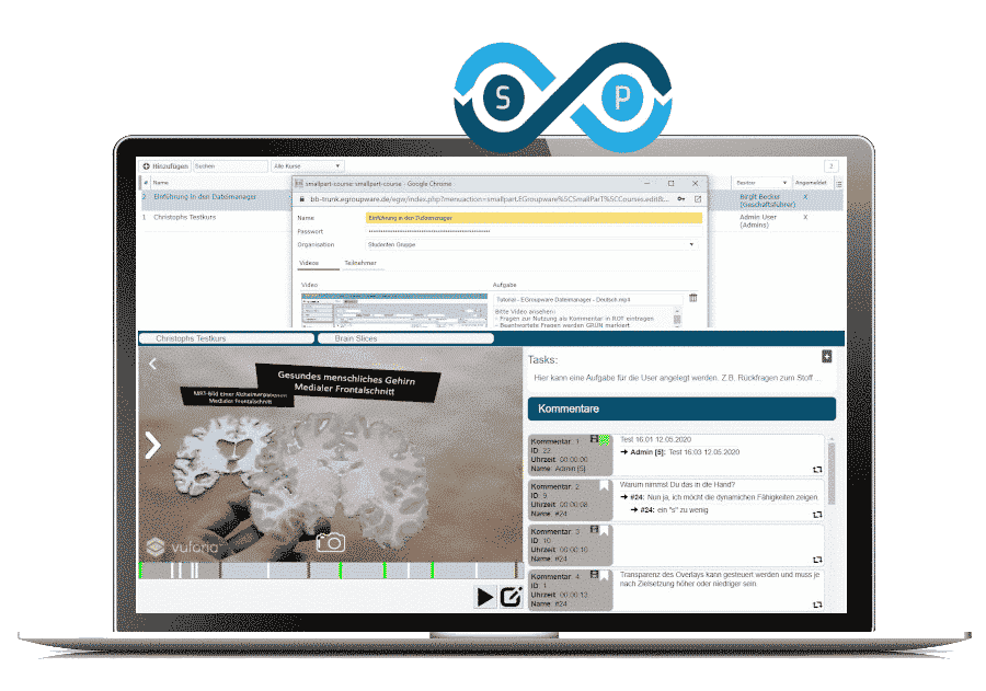 smallPART (selfdirected media assisted learning lectures & Process Analysis Reflection Tool) is an application for video-based learning. EGroupware GmbH develops the tool in cooperation with the Technical University of Kaiserslautern. smallPART allows time-synchronous work directly “in the video”: students and pupils can ask questions about the film or give feedback in “real time” – in secure mode or as a jointly held, public discussion.