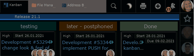 EGroupware 21.1 comes with a brand-new Kanban module that integrates seamlessly into the groupware solution. It visualizes already-existing data from some of the other groupware modules, for example, the task manager, the ticketing system, and the address book.