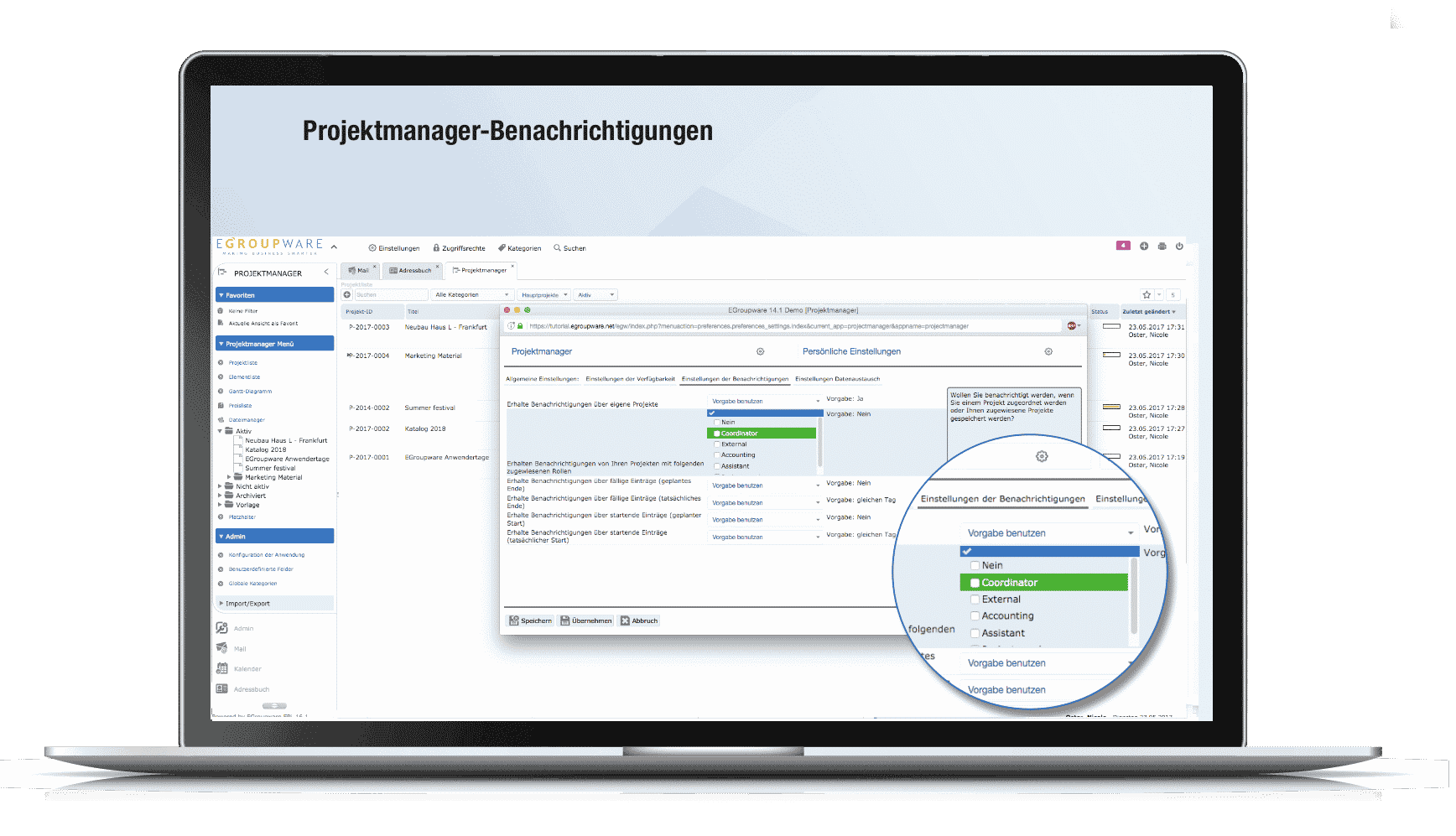 Como se ha anunciado, la versión 17.1 permite adaptar EGroupware aún más que antes, por ejemplo, una página de inicio de sesión que se ajuste a las necesidades de la empresa. Las notificaciones se presentan de forma más clara, para que los mensajes importantes se reconozcan más rápidamente. Los usuarios encontrarán diálogos más sencillos para seleccionar archivos o imágenes en los correos electrónicos o al guardar. En la libreta de direcciones, los duplicados pueden identificarse y fusionarse mediante el menú contextual. Todos los datos de contacto y los enlaces (por ejemplo, citas, entradas de infología, etc.) se fusionan automáticamente. La función CRM permite enviar correos personalizados en serie y guardarlos como infología para su documentación. CalDAV Sync elimina las tareas cuando el usuario se ha liberado de ellas.