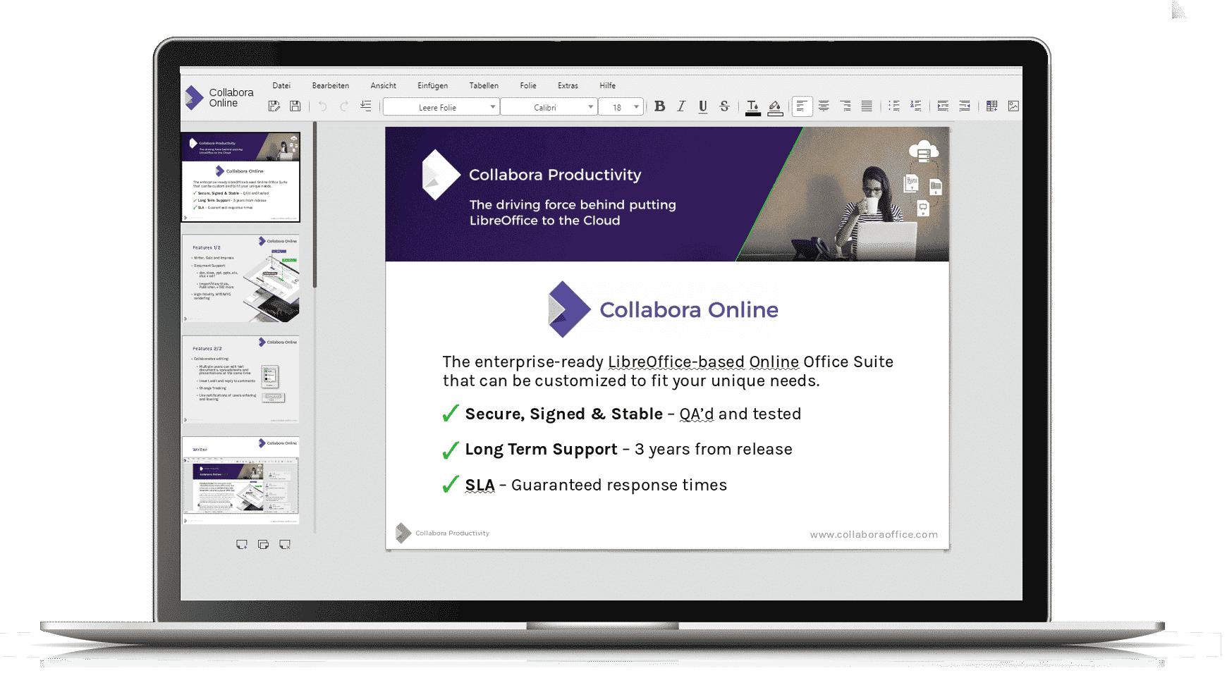 Con la versión 17.1, EGroupware ha pasado de ser el clásico groupware con un sistema CRM integrado a incluir un servidor de archivos con Collabora Online Office. El EGroupware basado en el navegador ya no necesita instalar un paquete de Office en el cliente. Los usuarios pueden compartir documentos o carpetas con socios externos y editarlos directamente con la oficina integrada Collabora Online. Todas las partes implicadas pueden editar conjuntamente documentos de texto, hojas de cálculo o presentaciones.
