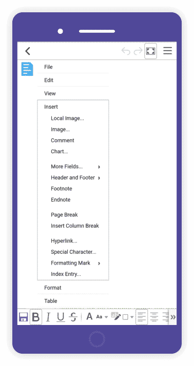 • Insertion de commentaires, diagrammes, formes par icône dans la barre d’outils